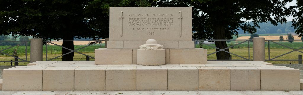 The 27th and 30th Divisions are honored. They served with the British Army from arrival in Europe in May 1918. Their participation in the Ypres-Lys Offensive began when the 30th Division took position in the line on August 18, and the 27th on August 23. The Allied advance began on August 31.