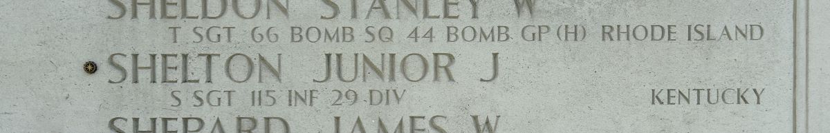 U.S. Army Staff Sgt. Junior J. Shelton, 24, of Sebree, Kentucky, killed during World War II, was accounted for April 25. Shelton was assigned to Company B, 1st Battalion, 115th Infantry Regiment, 29th Infantry Division.