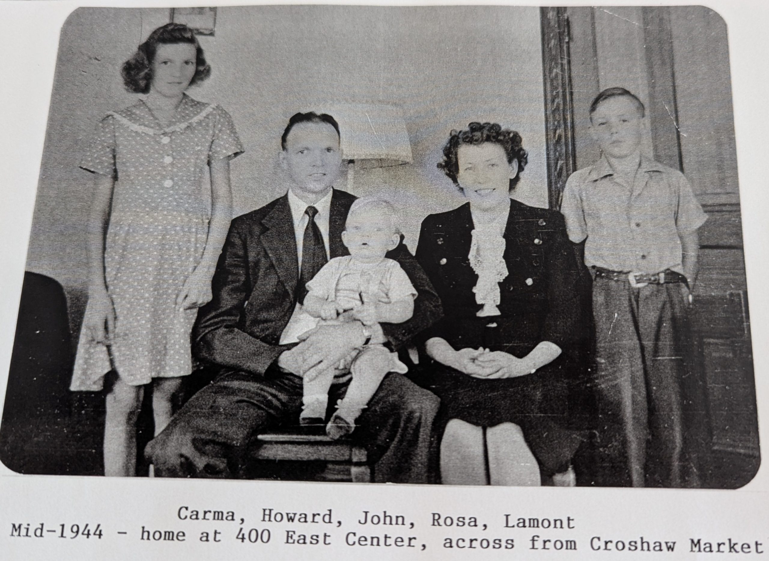 Croshaw’s family ran a grocery store for a while in California and later in Logan from 1939 to 1946. His family’s store was named the Croshaw Grocery, and they lived across the street from the market. In the spring of 1946, the family sold the grocery business to return to farming.
